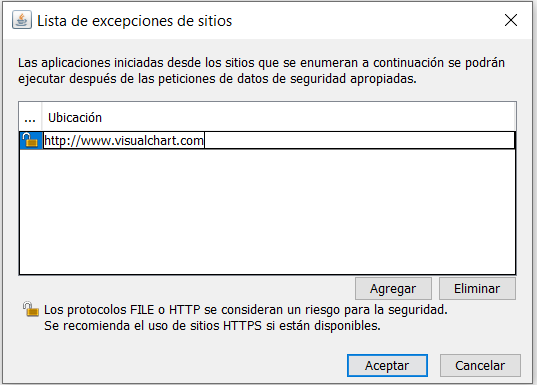 Visual Chart Lite: Error de seguridad Java